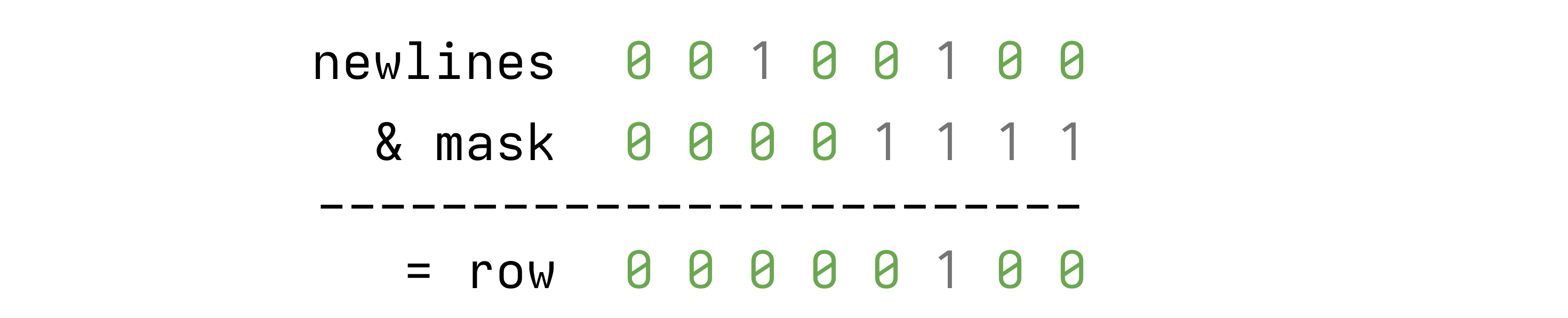 Then we take that mask and bitwise-and it with the newlines we passed in:
